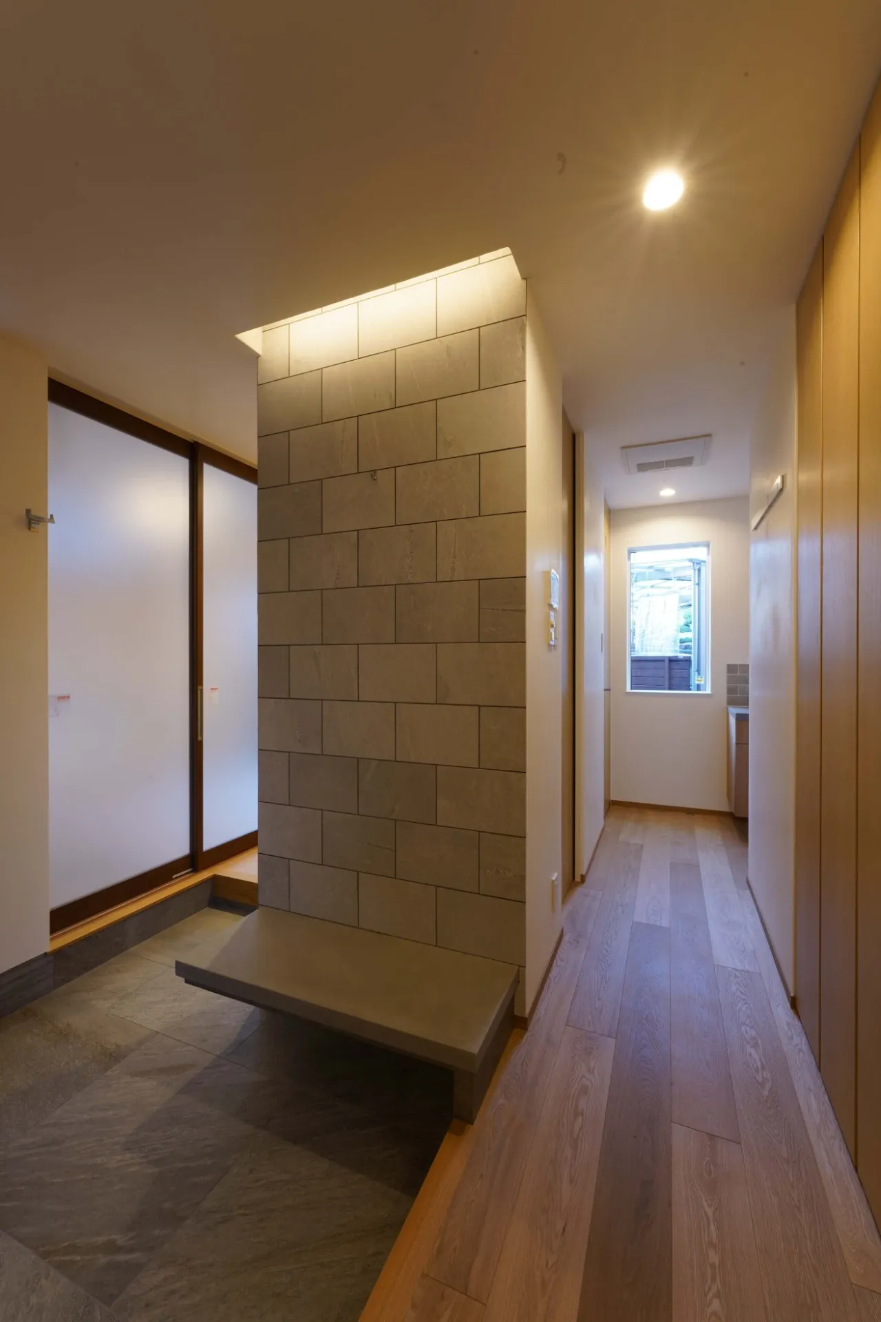 タイル貼りの壁の裏は家族5人分のロッカースペース。