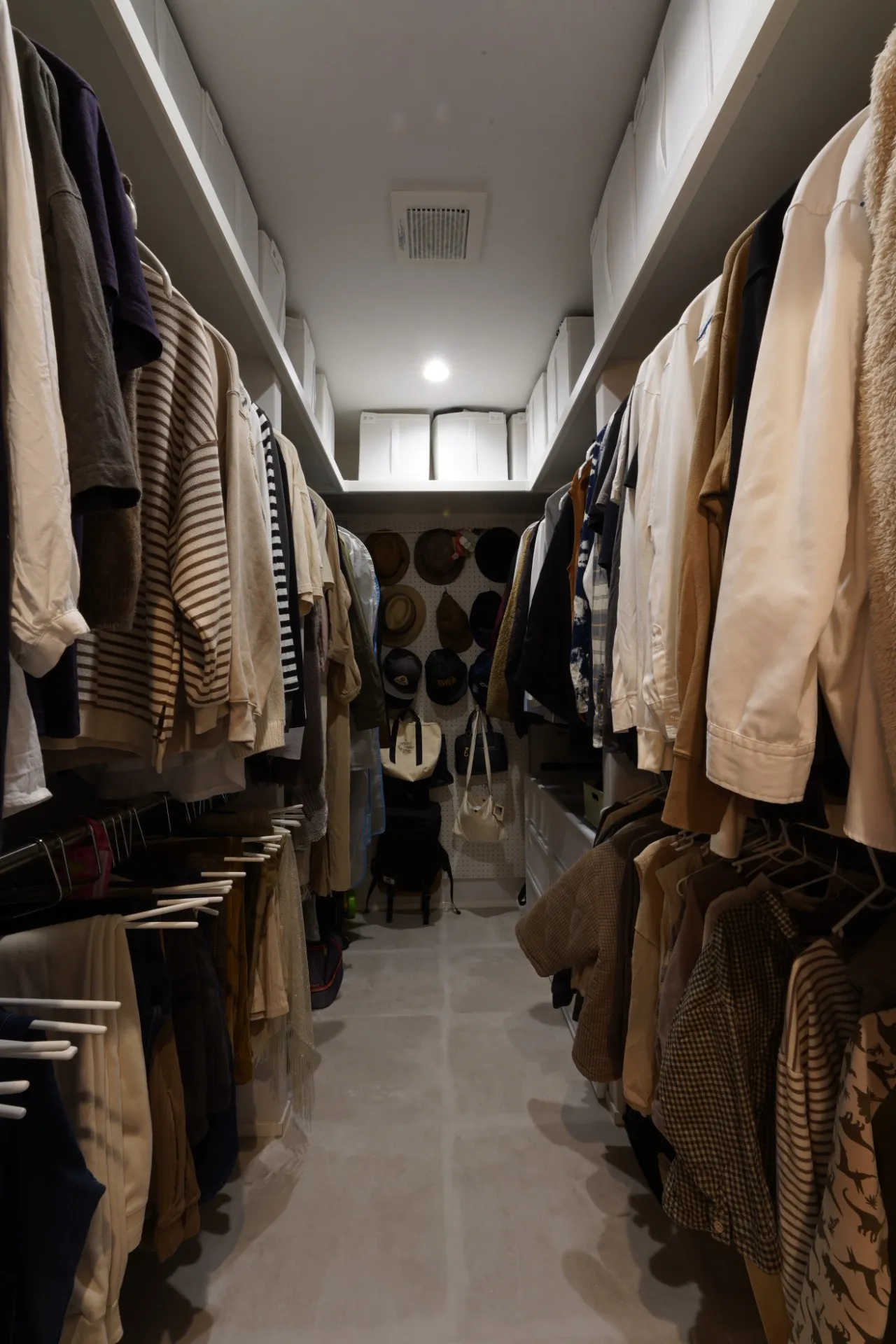 入念に計画したファミリークローゼット。 帽子から小物まですべてねらい通りに。