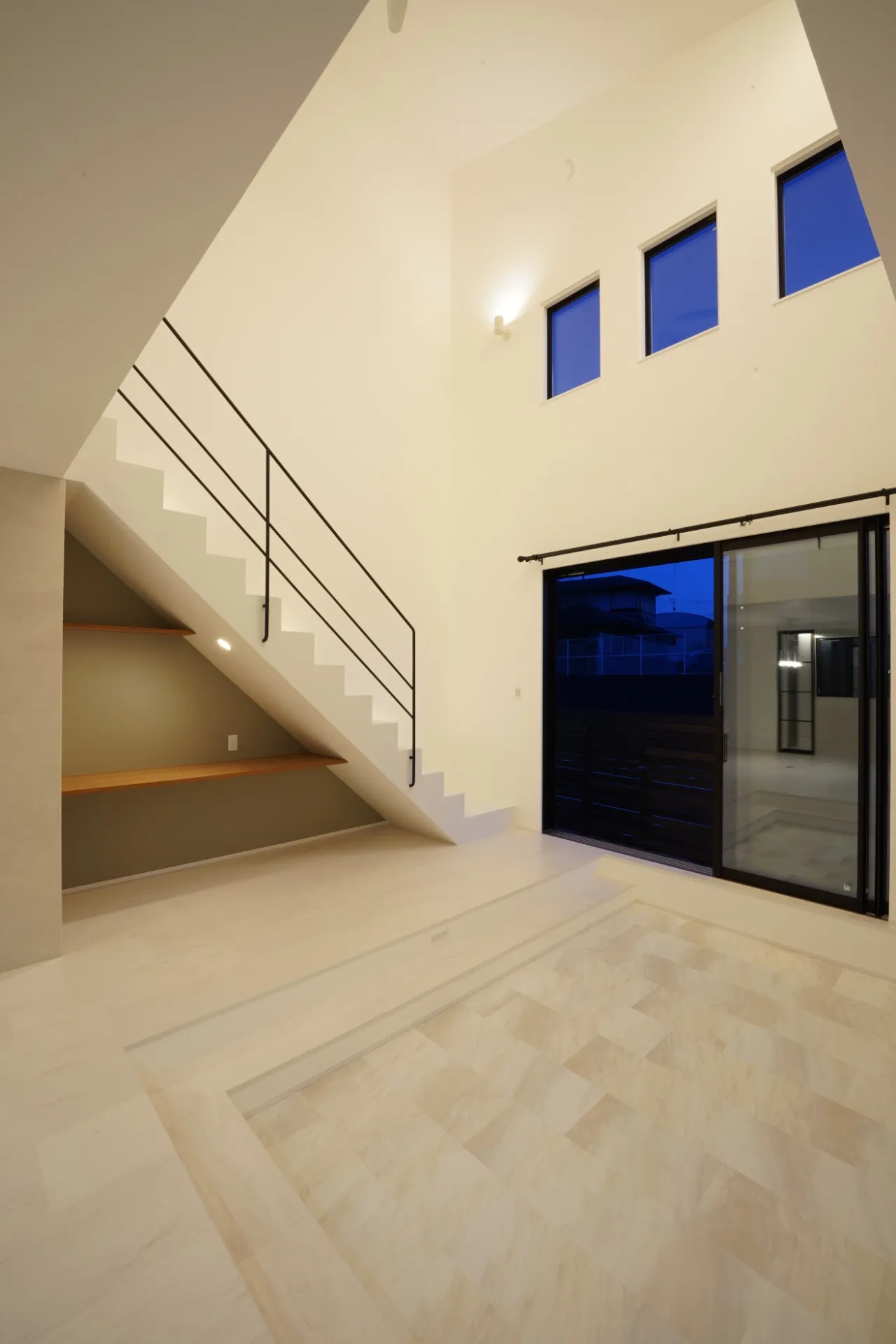 大きな吹抜けのある、ホワイトベースのお家。
