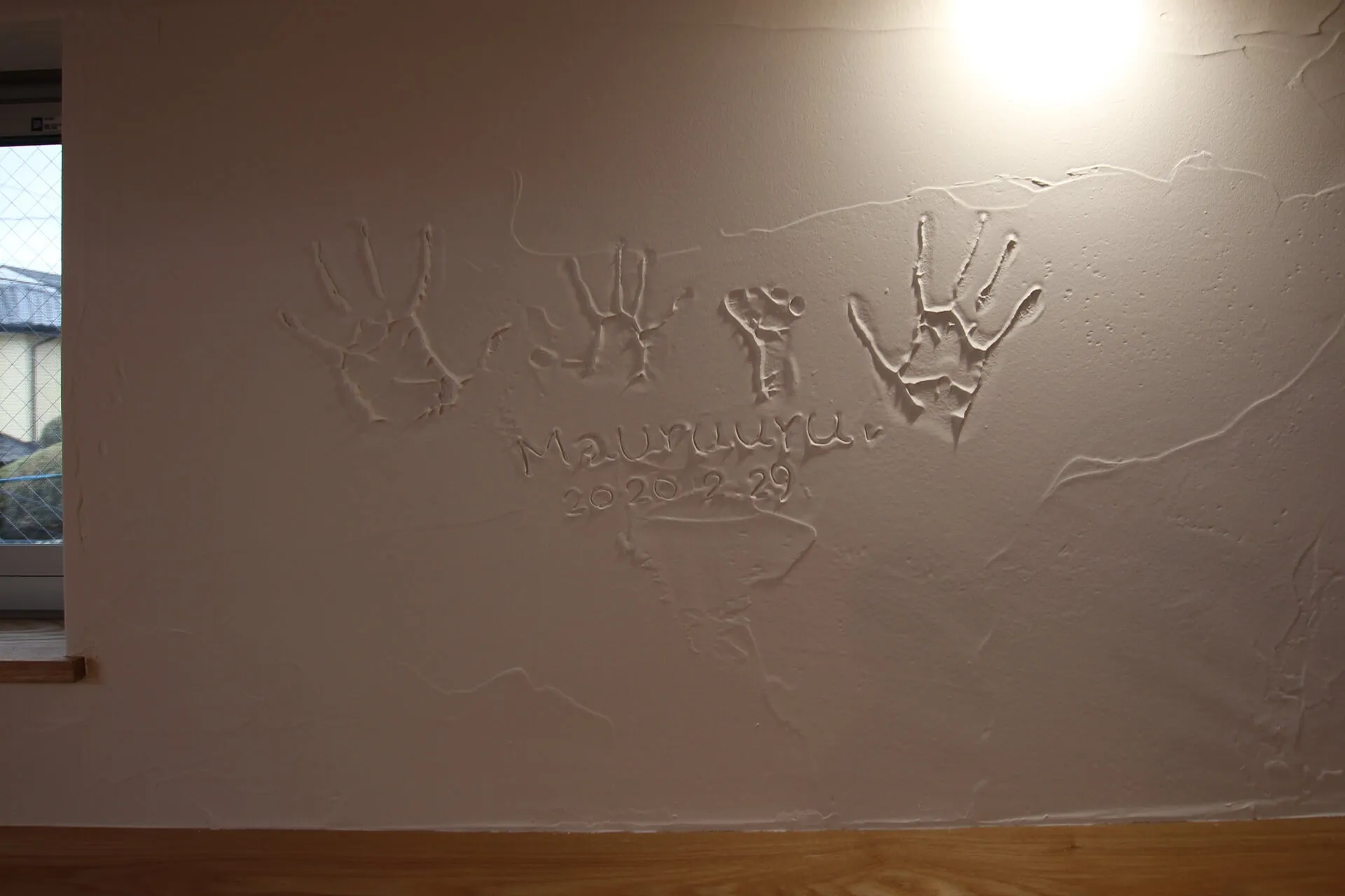 スタディスペースの壁面にはご家族で手形を記念で残しました。