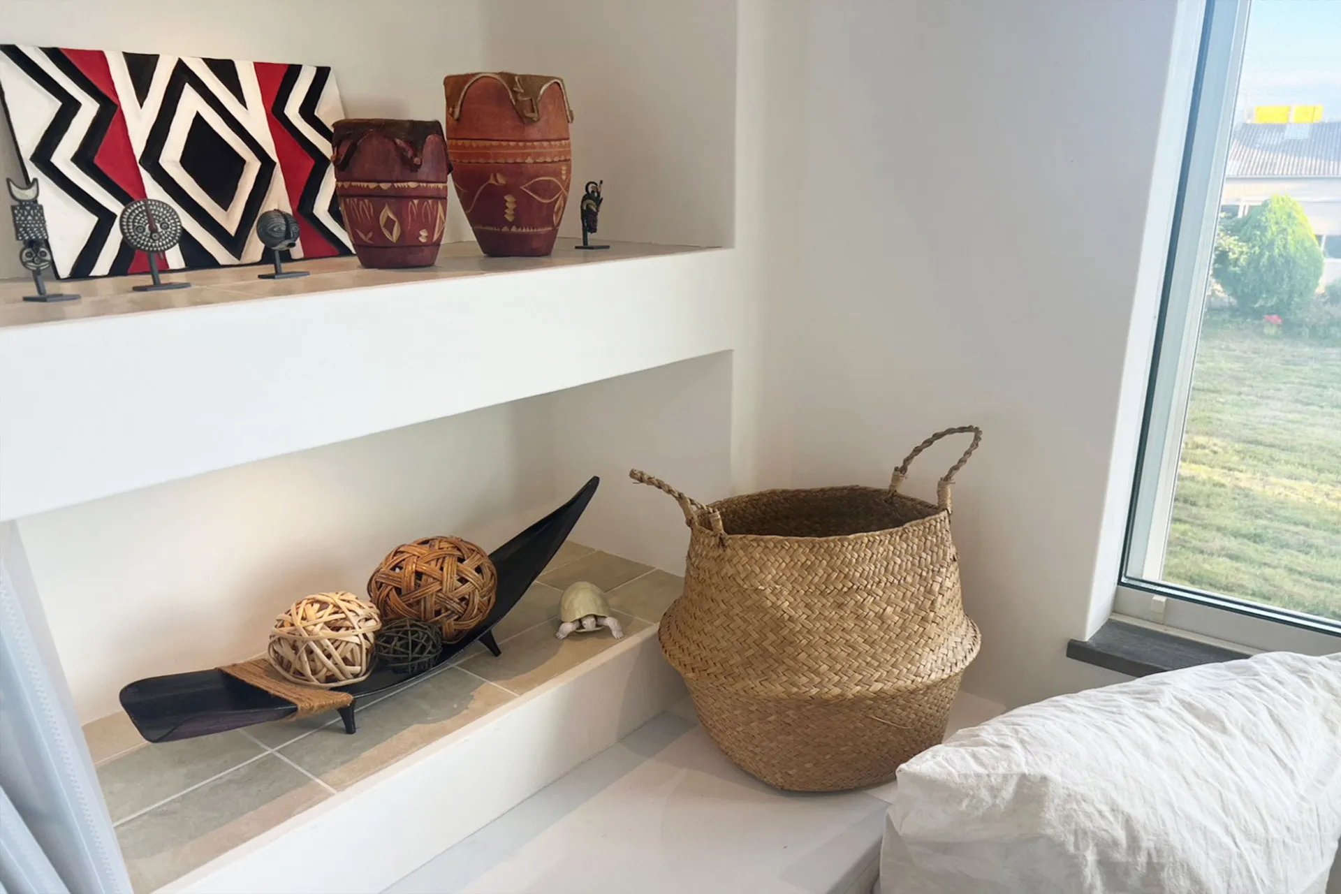 アフリカンスタイル。数多くの建築業者を周り、アフリカの居住区の感じ、天井のイメージを伝えても、できないと断れてしまい、最後にたどり着いたのが弊社ハナハウス。ハナハウスの建築女子と組んで出来上がったのは、こだわりしかない、世界にひとつのお家。アイキャッチも兼ねた石張りの壁、透明感のある扉、隠し収納のある窓際のタイル造作、オリジナルキッチン、大工さんとつくった天井創作、回遊できる間取り、隠し扉、ロフト、オリジナル古材階段、アーチを描く全面漆喰のダイニングルーム… こちらのページで少しでもそのこだわりの一旦を知っていただければと思います。